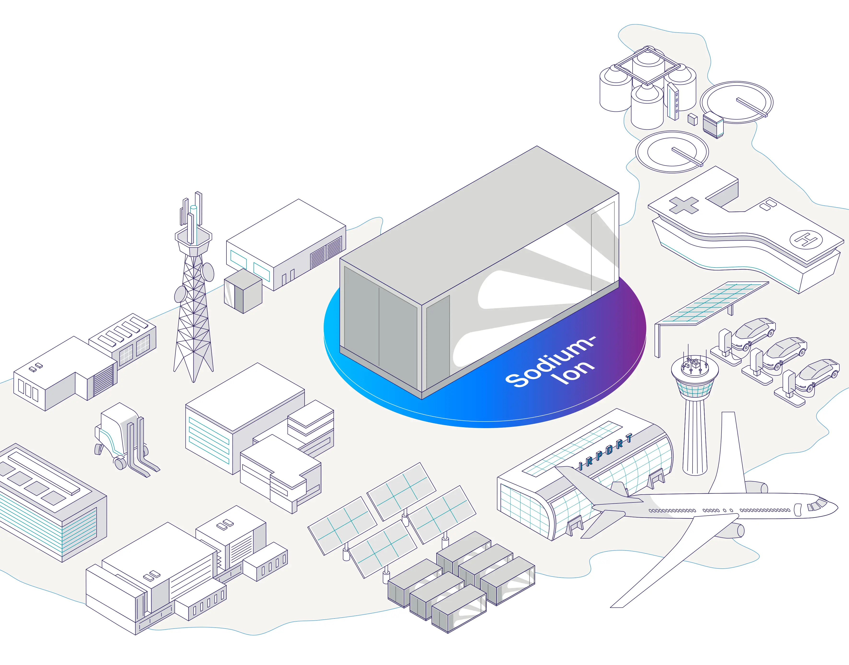 We energize the future. Sustainably. This is our mission. With cutting edge energy storage systems, combining safe, future-proof, and high-performing SODIUM-ION cell tech with intelligent data -driven energy management, we enable public and private energy consumers from utilities to commercial customers to infrastructure operators to become sustainable and resilient.